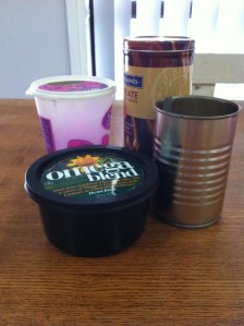 I find it quite silly that you can actually buy pretend packages and food containers for children’s play.  Once empty, the real ones make far superior toys for the play kitchen because they are the real thing – you can’t get any more authentic!  Plus by reusing these containers we are doing something positive for the environment and teaching our children about reducing waste.