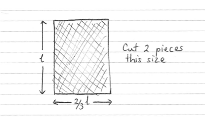 Then, cut out two rectangular pieces of fabric that have their length the same as the square’s side, but the width about 2/3 the side of the square. Hem one side of each rectangle along the length (this will become the part that opens)…or use an old blanket or similar that already has a finished edge.