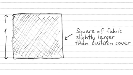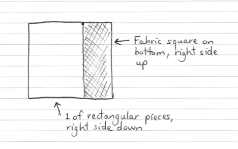 Place the square of fabric right side up, and fit the two rectangular pieces, right side down, onto the square so that they overlap.